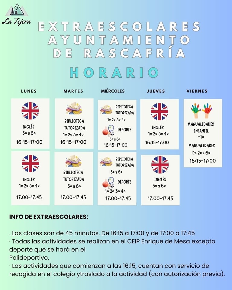HORARIOS POR ACTIVIDADES